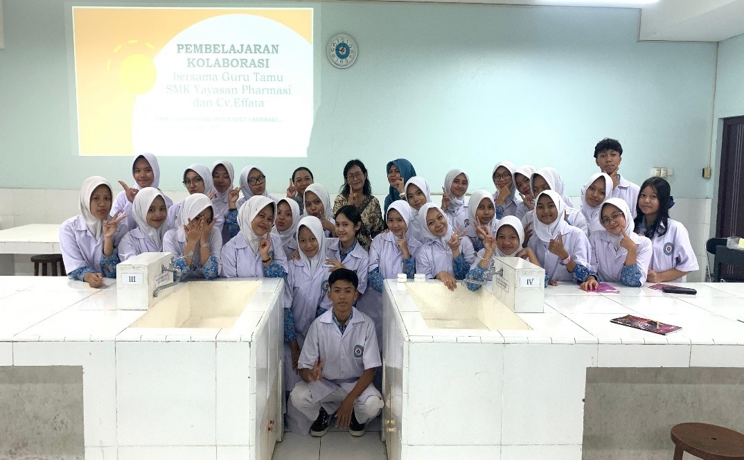 Kegiatan ini merupakan bagian dari program sinkronisasi kurikulum sekolah kejuruan dengan tuntutan Industri Dunia Kerja (IDUKA) , puluhan siswa dari jurusan Layanan Penunjang Farmasi Klinis dan Komunitas berkesempatan langsung mendapatkan wawasan praktis dari ahlinya.